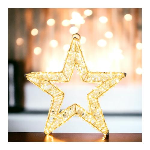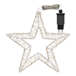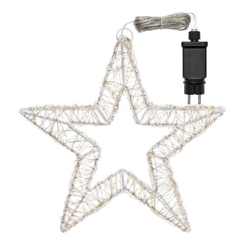 Stella 3D ø35cm HDM 800 MicroLED BIANCO CALDO e BIANCO ø1,5mm, serie HDM ad alta densità di MicroLED con cavo Argento Silver Metal Pro, Telaio metallo verniciato Bianco, gioco di luce automatico FlashLED Diamond (led luce fissa + led con lampeggio veloce), Trasformatore di Sicurezza GS IP44, IP44 uso Esterno e Interno, Cavo Alimentazione Trasparente 6m, Dimensioni 6m+ø35cm