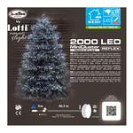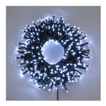 Catena lineare nastro minicluster ø6cm ntl 2000 led bianco ø5mm reflex, timer memory controller 8 giochi di luce selezionabili con timer on-off 8-16 ore disinseribile tramite pulsante luminoso, trasformatore bassa tensione, uso esterno, cavo verde, dimensioni 4+40,5m, bobina in plastica rigida inclusa