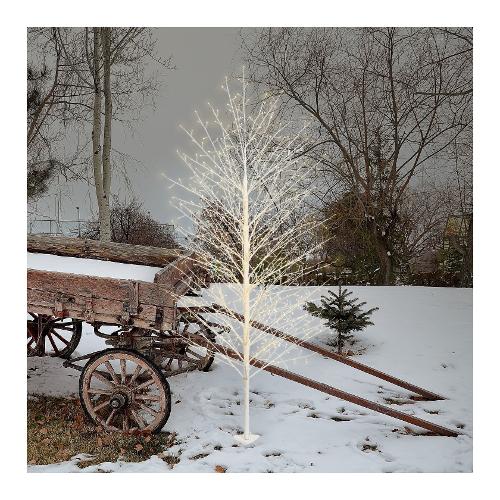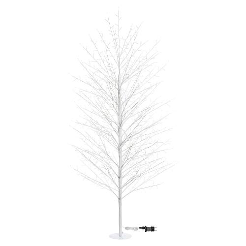 Albero ramo tiglio bianco h200 cm 1120 microled bianco caldo ø1,5mm, long leg led con gambo di 3 cm, cavo metallo argento metal silver, gioco di luce automatico flashled diamond (1008 led a luce fissa + 112 led flash con lampeggio veloce), base in metallo (asportabile), rami modellabili con anima in metallo, trasformatore selv di sicurezza, ip44 uso esterno e interno, cavo di alimentazione bianco 4m
