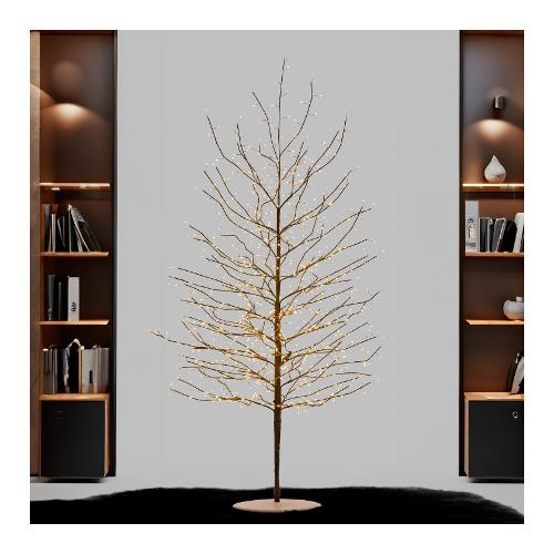 Albero ramo tiglio marrone h170 cm 784 microled bianco caldo ø1,5mm, long leg led con gambo di 3 cm, cavo metallo rame metal copper, gioco di luce automatico flashled diamond (686 led a luce fissa + 98 led flash con lampeggio veloce), base in metallo (asportabile), rami modellabili con anima in metallo, trasformatore selv di sicurezza, ip44 uso esterno e interno, cavo di alimentazione marrone 4m