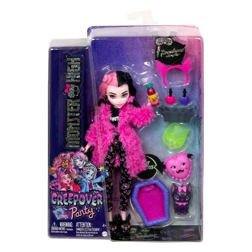 Certo, in ogni pigiama party ci sono coccole e make-up... ma se ci aggiungi anche libri di incantesimi e smalto per artigli, la serata diventa davvero da urlo! Monster high™ presenta creepover party™, una collezione di personaggi da brivido con accessori a tema che ispirano la narrazione di storie e giochi di moda da urlo. Ogni bambola monster high™ sfoggia un look nuovo, un accessorio per il pigiama party e l'adorabile cucciolo. Ognuna in vendita separatamente, secondo disponibilità. Completamente snodata. La bambola non può reggersi in piedi da sola. Colori e decorazioni possono variare.