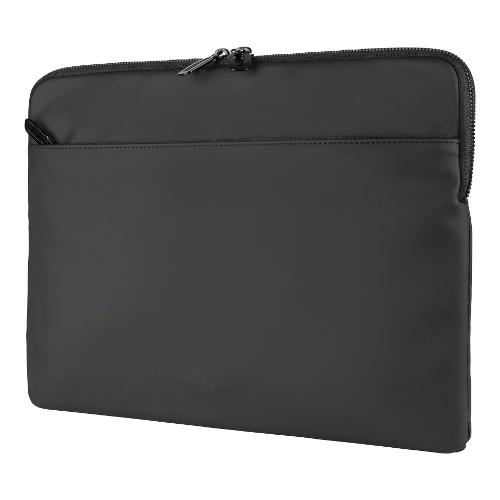 Sleeve in materiale gommato antipioggia in plastica riciclata. Anti-Slip-System per bloccare il laptop. Tasca frontale per accessori.