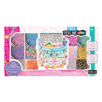 Piccolo set di perline Pop. Include contenitore con coperchio, oltre 500 perline di colori e forme assortite (heishi, frutta, smile, cuori, ABC), filo elastico in 3 colorazioni