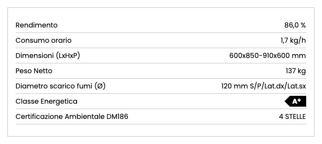 Cucina legna 6kW VICENZA EVO VST Nero antracite 4 stelle (60x60x85cm)