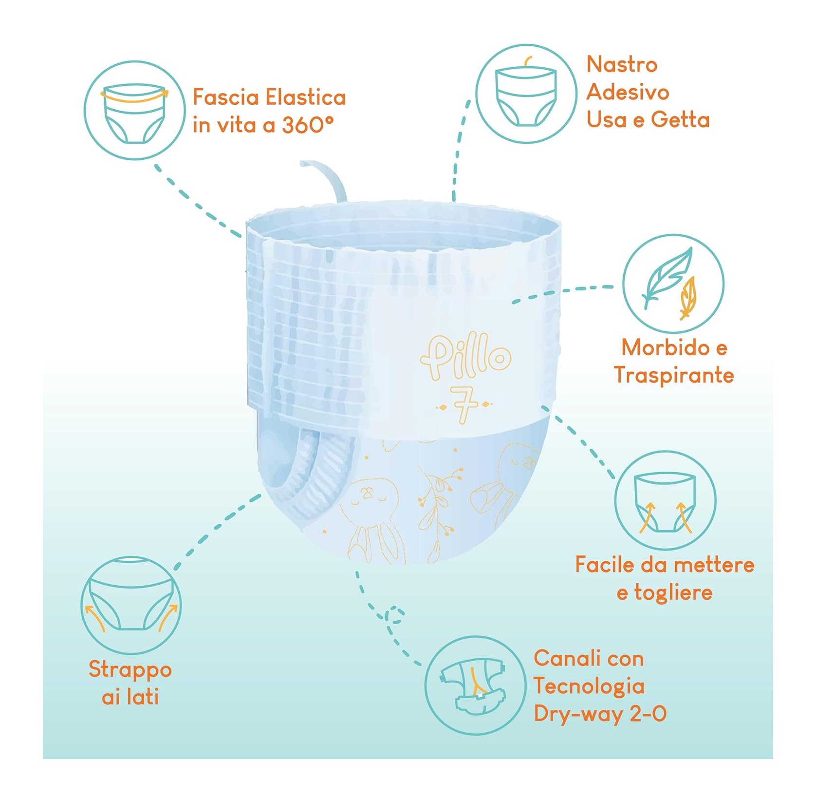 I pants pillo sono studiati per la fase di spannolinamento del bambino. Grazie al tessuto morbido e traspirante avvolgono il corpo del bambino in modo soffice e delicato. I pants pillo sono facili da indossare grazie alla vestibilità a mutandina. Inoltre, la fascia elastica in vita a 360° consente perfetta adattabilità al corpo del bambino. La certificazione oeko-tex standard 100 dei pannolini pillo assicura la qualità dei materiali impiegati nel processo produttivo totalmente made in italy. L’impatto ambientale di pillo è sempre più ridotto! La certificazione i’m green pe testimonia l’impegno di pillo nell’impiego di bioplastiche completamente compostabili nella produzione di pannolini. Inoltre, la certificazione fsc testimonia l’utilizzo di cellulosa proveniente da foreste gestite in modo sostenibile.