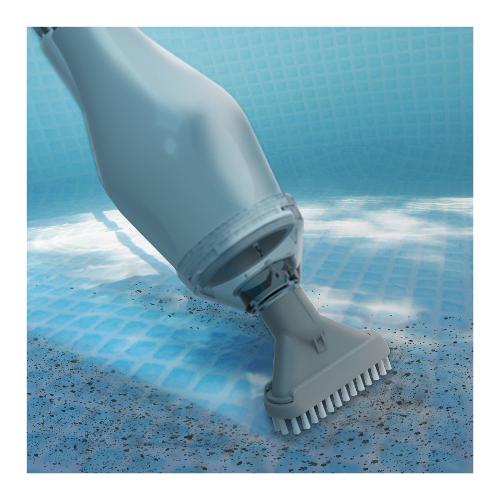 Aspiratore da fondo per piscine. Il pratico design twist and close facilita l'apertura e lo svuotamento dell'aspirapolvere - consigliato per la pulizia di piscine a pareti morbide da 244 cm a 457 cm (rotonde o rettangolari) - funziona tramite la potenza di aspirazione del sistema di filtraggio da 45 w (flusso minimo 2 m³ all'ora). - rimuove sporco e sabbia dal fondo senza intasare il filtro. - il palo ha una lunghezza di 178 cm quando montato. - include 5 metri di tubo flessibile e raccordi per le marche più comuni sul mercato. - installazione semplice, senza strumenti richiesti.