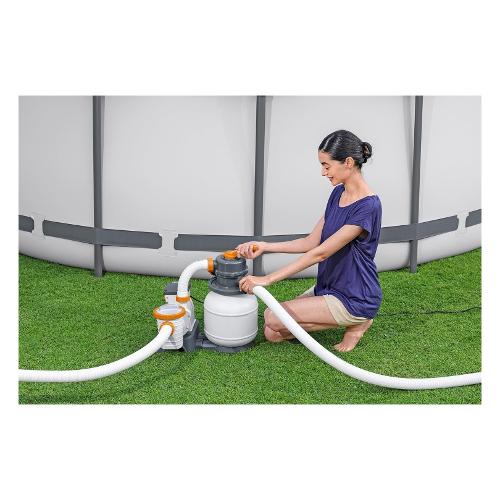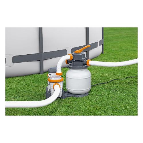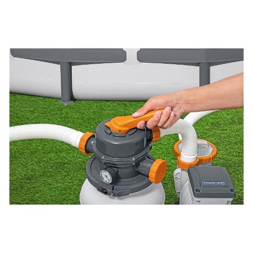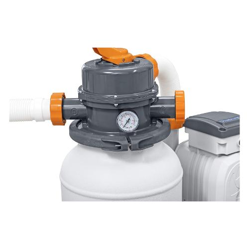 Regala alla tua piscina fuori terra un'esperienza di acqua cristallina e perfettamente pulita con il sistema di filtraggio a sabbia bestway® da 5.678 l/h! Questo potente sistema non solo è più ecologico e più durevole delle pompe con filtro a cartuccia, ma richiede anche meno manutenzione. Può essere utilizzato con sabbia di quarzo o sfere filtranti polysphere™ (entrambi venduti separatamente) per rimuovere i contaminanti dalla piscina. Con un prefiltro che cattura in anticipo i contaminanti più grandi, l'efficienza e la durata del sistema di filtraggio a sabbia aumentano notevolmente. Il set include anche un dispenser di prodotti chimici chemconnect™ che semplifica la manutenzione della piscina. Questo dispositivo garantisce una concentrazione costante di cloro (cloro non incluso) in tutta la piscina. Il robusto sistema di filtraggio a sabbia con serbatoio del filtro resistente alla corrosione viene fornito premontato, quindi tutto ciò che devi fare è collegarlo e accenderlo. Il sistema è ideale per piscine fuori terra con una capacità da 1.100 a 42.300 litri e dispone di una valvola a 6 vie che consente di passare facilmente tra filtro, chiuso, controlavaggio, risciacquo, scarico e ricircolo.