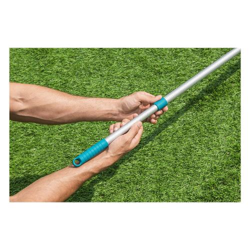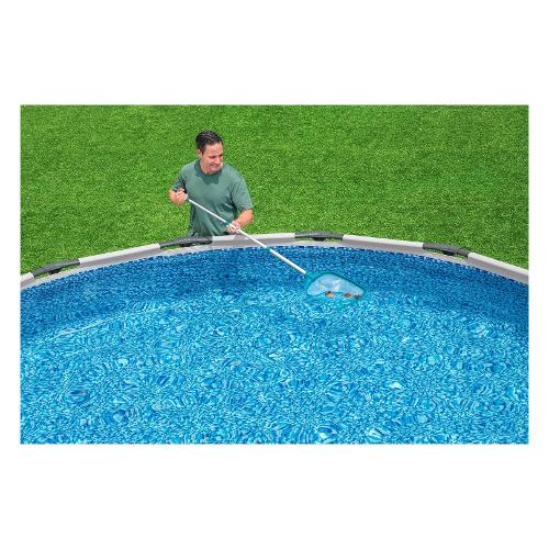 Con la rete per piscina bestway® aquascoop™ ottieni acqua cristallina senza sforzo. Questo pratico dispositivo è stato appositamente progettato per ottimizzare la pulizia della vostra piscina. Il guadino per piscina è dotato di asta telescopica estensibile che raggiunge la lunghezza di 163 cm ed è realizzato in resistente alluminio. Ciò non solo garantisce stabilità, ma consente anche di raggiungere facilmente luoghi difficili da raggiungere. Il guadino stesso è dotato di una rete resistente che rimuove senza sforzo foglie e altri detriti dalla piscina. La sua speciale forma permette di pulire a fondo anche negli angoli difficili. Questo guadino per piscina è il complemento perfetto per piscine con un diametro fino a ø 305 cm.