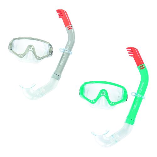Il set snorkeling hydro-swim™ secret bay di bestway® è il compagno ideale per un'esperienza subacquea perfetta. Il set comprende maschera e boccaglio ed è disponibile in due diversi colori. La maschera è dotata di una lente in policarbonato con protezione uv e di una doppia guarnizione sul bordo imbottita per una vestibilità precisa. Grazie alla cinghia per la testa in due parti completamente regolabile, la maschera rimane saldamente e saldamente in posizione durante ogni immersione. La tecnologia dry-top snorkel impedisce efficacemente l'ingresso di acqua. Il boccaglio per lo snorkeling e il cinturino regolabile garantiscono una vestibilità ottimale.Ovunque Ti porti la tua prossima avventura di nuoto, il set da snorkeling hydro-swim™ secret bay è un must!
