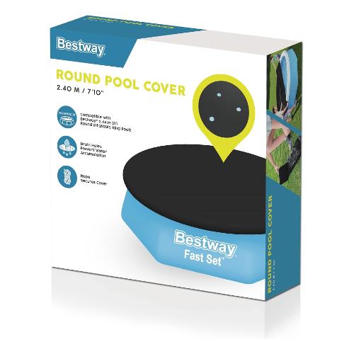 Il pratico telone in pvc di bestway® è la soluzione ideale per proteggere la vostra piscina fuori terra fast set™ da accumuli d'acqua, contaminazioni e depositi indesiderati. Si abbina perfettamente alla piscina fuori terra bestway® fast set™ da 244 cm. Grazie ai fori di drenaggio nel telone, l'accumulo di acqua appartiene al passato, che altrimenti potrebbe causare danni alla vostra piscina. Il telone è inoltre dotato di corde di fissaggio per poterlo fissare alla vostra piscina in modo semplice e sicuro.