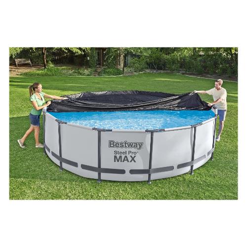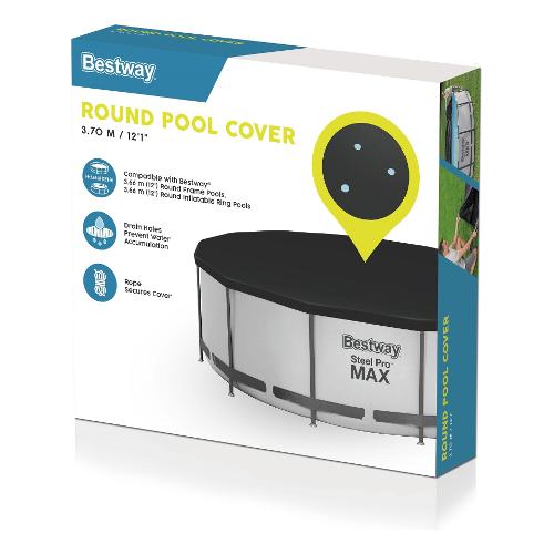 Proteggi la tua piscina con il telone rotondo in pvc ø 370 della bestway! Adatto per piscine steel pro™, steel pro max™ e fast set™ da 366 cm, protegge efficacemente l'acqua della piscina da ogni tipo di contaminazione.Il Telone è realizzato in robusto materiale pvc nero e dispone di fori di drenaggio per evitare l'accumulo di acqua. La facile installazione è resa possibile dalle corde di fissaggio incluse.