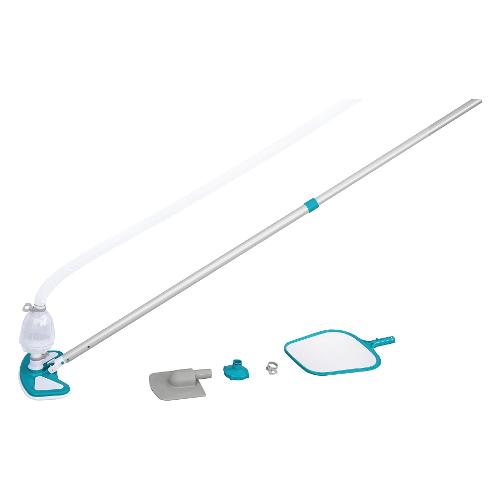 Mantieni la tua piscina perfettamente pulita con il set base per la cura della piscina Bestway® AquaClean™! Sviluppato per pompe filtro e sistemi di filtraggio a sabbia con una portata di 2.006 l/h o superiore, questo set è la soluzione ideale per una manutenzione efficiente della piscina. Indipendentemente dal fatto che tu abbia una piscina fuori terra fino a Ø 610 cm o un sistema di filtraggio più grande, il set base AquaClean™ è stato sviluppato per consentirti di pulirla facilmente. Il manico leggero del set è dotato di un aspirapolvere intercambiabile e di un guadino per facilitare la pulizia della piscina. L'aspiratore per piscina è dotato di un contenitore per lo sporco riutilizzabile e può essere facilmente combinato con la pompa filtro. Ciò consente di aspirare efficacemente le impurità e garantire acqua della piscina limpida. Il guadino con rete resistente è un complemento indispensabile per la manutenzione della piscina. Il set include anche un adattatore per l'utilizzo con vari sistemi di filtraggio per garantire che il set si adatti perfettamente alla tua piscina. - Incluso nel set: · 1 attacco per guadino con robusta copertura in rete · 1 attacco spazzola aspirante · 1 asta telescopica in alluminio leggero per guadino e spazzola aspirante (lunghezza: 279 cm) · 1 tubo per spazzola aspirante (Ø 32 mm / lunghezza totale 750 cm) con adattatore per l'interno della piscina