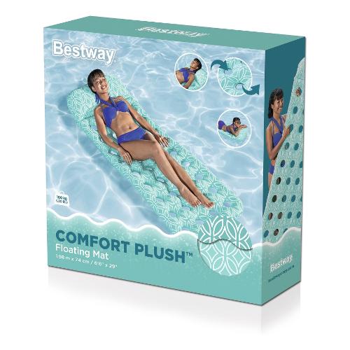 Scopri la migliore esperienza di benessere con il materasso ad aria bestway® comfort plush™. Questo materasso ad aria gonfiabile combina un comfort eccezionale con una durata eccezionale per rendere il tuo tempo in piscina o in spiaggia un vero piacere. Quando entri in contatto con l'acqua si sviluppa un affascinante effetto cromatico che porta il tuo relax a un nuovo livello. Il cuscino integrato offre ulteriore comfort, mentre i passaggi naturali assicurano un piacevole raffreddamento. Il materasso ad aria è dotato di valvole a rilascio rapido in modo che sia pronto per l'uso immediato. Il comfort plush™ viene fornito con una toppa di riparazione in modo che i danni minori possano essere riparati in pochissimo tempo.
