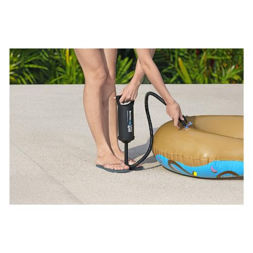 Combina prestazioni ed efficienza eccezionali con la pompa a doppio pistone alternativo bestway® air hammer™! Progettato per la massima portata d'aria. La pompa funziona sia con movimenti verso l'alto che verso il basso, il che accorcia l'intero processo di pompaggio su e giù. Il tubo flessibile e i 3 diversi adattatori per valvole consentono di utilizzare la pompa su molti articoli gonfiabili diversi. Non importa se hai una piscina per bambini, materassi ad aria, barche, ecc. – air hammer™ lo pomperà! La pompa è anche facile da trasportare e riporre.