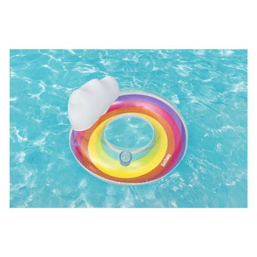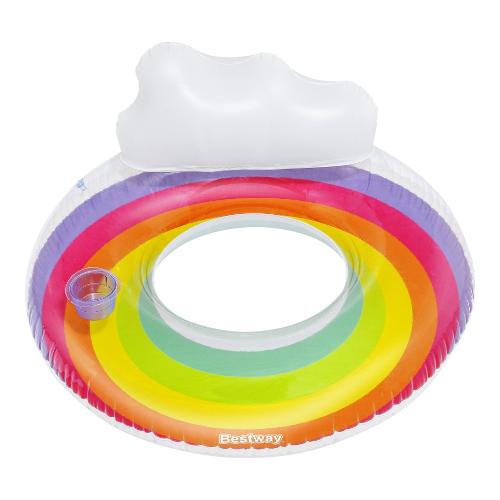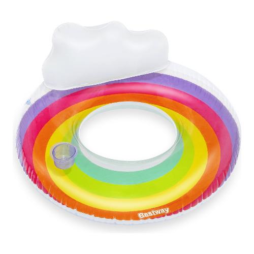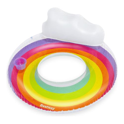 Preparati per un viaggio in un paradiso colorato con l'anello da nuoto bestway® rainbow dreams™ con poggiatesta. il salvagente rainbow dreams™ offre spazio sufficiente per rilassarsi e galleggiare nell'acqua. Il design arcobaleno aggiunge un tocco vivace e allegro alla tua esperienza di bagno. Il punto forte di questo salvagente è il comodo schienale, che permette di sedersi e godersi appieno la tranquillità dell'acqua. Il rainbow dreams™ swim ring è dotato anche di un comodo portabevande in modo da poter tenere le bevande a portata di mano senza dover uscire dall'acqua. Questo anello da nuoto si gonfia rapidamente ed è pronto per l'uso ed è altrettanto facile da sgonfiare e riporre. Che sia in piscina, al lago o in spiaggia, l'anello da nuoto rainbow dreams™ è il tuo fedele compagno per rilassanti momenti in acqua. Ogni confezione contiene non solo l'anello da nuoto stesso, ma anche una pratica toppa di riparazione.