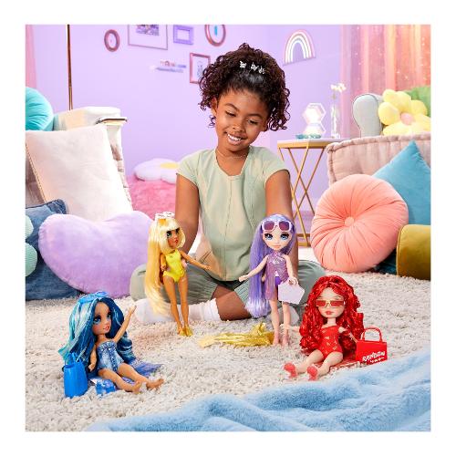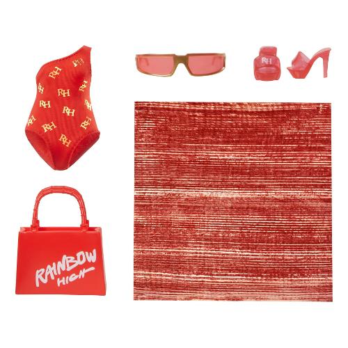 Inoltre, pronta per il sole con gli esclusivi accessori da gioco: occhiali da sole, scarpe, borsa.