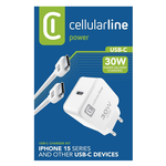 USB-C Charger Kit per la serie di iPhone 15 è il kit composto da caricabatterie da rete 30W e cavo USB-C to USB-C che permette di caricare alla massima velocità diversi dispositivi, tra cui l’intera serie di iPhone 15, iPad e molti altri dispositivi con porta USB-C. Questo kit per iPhone 15 offre una ricarica sicura, rapida ed efficiente, assicurando che il dispositivo rimanga sempre pronto all’uso, riducendo al minimo i tempi di inattività. Una soluzione perfetta 2in1: con questo kit Cellularline non dovrai più pensare a come ricaricare il tuo iPhone 15.
