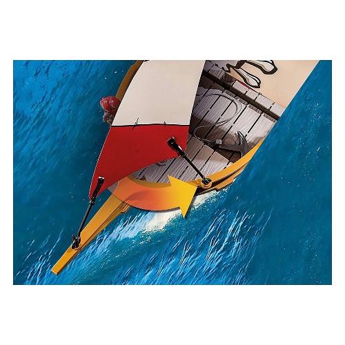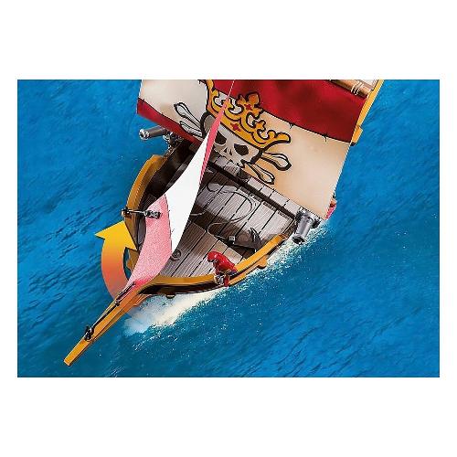 Inizia l'avventura piratesca! Sulla nave, veloce e galleggiante, il pirata aiuta ad attaccare le navi nemiche o a scongiurare nuovi pericoli per il mondo dei pirati. Grazie ai cannoni rotanti e orientabili, gli assalitori vengono rapidamente messi in fuga. Ora la strada è libera per cercare i tesori perduti dei pirati con mappa e bussola...