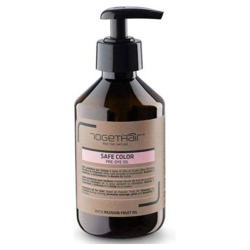 Olio protettivo a base di olio di frutto della passione da miscelare con colorazioni ad ossidazione. La sua formula con oli naturali, protegge la cute durante il servizio colore, ne favorisce copertura, brillantezza e durata nel tempo. Applicato puro sul contorno viso prima del servizio colore crea una barriera antimacchia. In miscela: aggiungere una o due dosi di safe color per 100ml di miscela tinta-ossidante. Emulsionare ed applicare. Antimacchia: applicare il prodotto puro sul contorno viso prima del servizio colore. Risciacquare al termine del servizio.