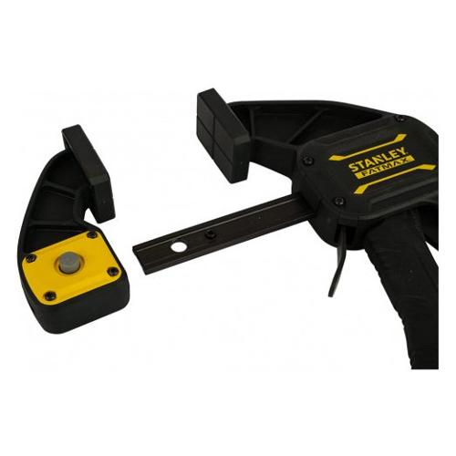 Morsetto a barra con grilletto in acciaio stampato e trattato termicamente. Ganascia reversibile - pulsante di rilascio per trasformare il morsetto in allargatore senza l'uso di utensili. Pratica maniglia per facilitare un alto serraggio per l'utilizzo con una sola mano. Forza serraggio fino a 135 kg