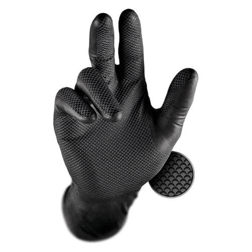 Robusto guanto in nitrile brevettato, con motivo a squama di pesce migliora la trazione e presa per superfici oleose o bagnate. Compatibile con touchscreen e senza silicone. Applicazioni: è la scelta perfetta per applicazioni di ispezione, assemblaggio, manutenzione e riparazione di apparecchiature, verniciatura, settore automobilistico
