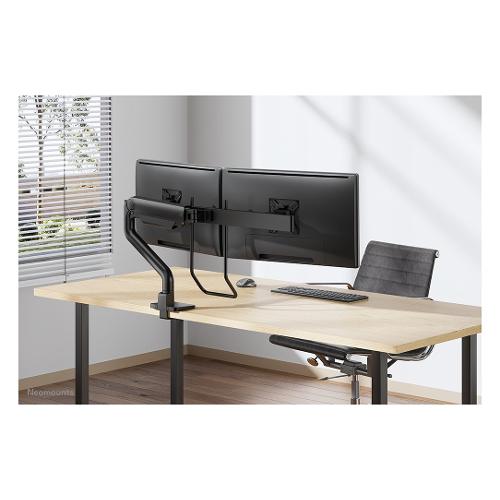 Il Neomounts DS75S-950BL2 NEXT One è un supporto da scrivania full motion per due schermi fino a 27" con una capacità massima di peso di 8 kg per schermo. La versatile tecnologia di inclinazione (120°), rotazione (360°) e rotazione (180°) consente di cambiare l'angolo di visione per sfruttare appieno le capacità dello schermo. Inoltre, il supporto è dotato di molla a gas per la regolazione dell'altezza (19,1-52,7 cm) e della profondità (17,3-71 cm), per creare la posizione di lavoro perfetta. I display possono essere regolati individualmente in altezza, per garantire un perfetto allineamento dello schermo. Inoltre, grazie alla flessibilità delle teste VESA, gli schermi possono essere posizionati in grandi cabine di pilotaggio. L'impugnatura è regolabile in altezza per garantire il massimo comfort.