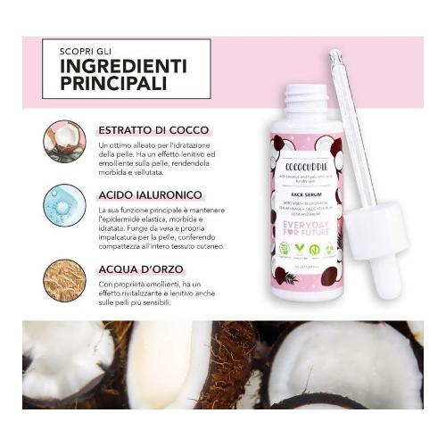 Il perfetto alleato delle nostre creme viso per un effetto ancora più profondo. La tua pelle risulterà così più tonica e luminosa. La presenza di Acido Ialuronico, ricco di proprietà idratanti, garantisce una pelle più levigata e uniforme. Inoltre, agisce contro i segni del tempo, sia in modo preventivo, sia per un effetto più disteso della pelle. Dopo aver deterso il viso, applica un leggero strato di prodotto e massaggia fino a completo assorbimento. Poi procedi con la crema viso di Everyday For Future (o con quella che usi già). Adatto da utilizzare la sera come trattamento notturno o la mattina prima del make-up. Si assorbe facilmente.