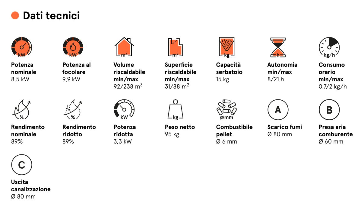 Stufa pellet 8,5kW LUCE PLUS 9 Light bronze 5 stelle Classe A+ 7023041