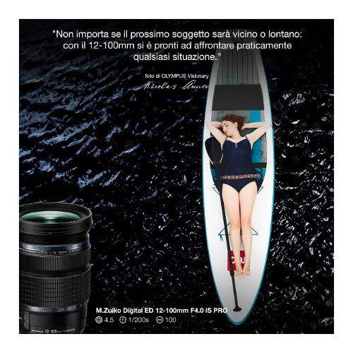 L'obiettivo M. Zuiko Digital ED 12-100 mm f4.0 IS PRO è un vero fuoriclasse. È l'unico zoom professionale ad alto ingrandimento in grado di coprire da solo una gamma focale di 24-200 mm equivalente a 35 mm. Questo obiettivo Micro Quattro Terzi è caratterizzato da una costruzione premium e da una lente di qualità superiore per fornire prestazioni ottiche spettacolari. Ti aiuta a realizzare immagini con una nitidezza assoluta, grazie all'IS sincronizzata a 5 assi, il sistema di stabilizzazione dell'immagine più potente al mondo. Ogni centimetro di questo obiettivo è di livello PRO: costruzione resistente alle intemperie, messa a fuoco automatica veloce e comandi semplificati. La sua ampia lunghezza focale consente di scattare ritratti, foto grandangolari, paesaggi e macro. Un solo obiettivo. Versatilità senza precedenti.