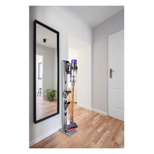 Supporto da pavimento con supporti per aspirapolvere senza filo: per riporre in modo ordinato e chiaro e per accedere rapidamente ai diversi accessori dell'aspirapolvere. Ampio foro per il passaggio dei cavi per una facile gestione dei cavi: ideale per caricare l'aspirapolvere senza filo. Adatto tra gli altri per Dyson, Bosch, AEG, Philips, Rowenta e modelli simili