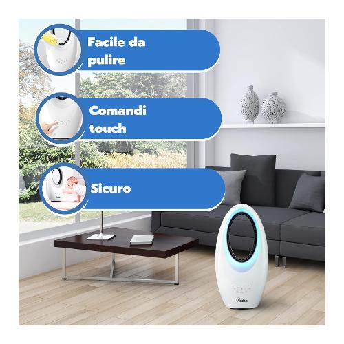 Il tower fan Ardes è molto silenzioso grazie all'assenza di pale. Rinfresca la tua stanza e goditi la piacevole atmosfera creata dalle luci led di colore bianco, verde, viola o azzurro del ventilatore.