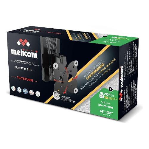 Supporto TV con funzione di inclinazione e rotazione. Certificato TUV e 100% Made in Italy. Adatto anche per cartongesso con portata massima di 10kg