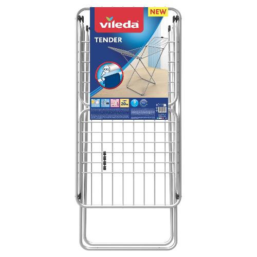 Stendibiancheria da pavimento con fili tubolari in alluminio che evitano le pieghe sui capi asciutti.