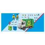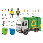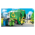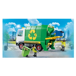 Il set include il camion rifiuti, dei contenitori per i rifiuti e una figura Playmobil che rappresenta l'operatore del camion.