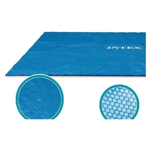 Questo telo di copertura termico Intex è realizzato con un materiale plastico in grado di immagazzinare il calore dei raggi solari mantenendo la temperatura dell'acqua immutata durante il giorno e rilasciandolo durante la notte evitando abbassamenti di temperatura dell'acqua.Il telo termico di copertura galleggiando sull'acqua impedisce a foglie e a insetti di posarsi sull'acqua mantenendola limpida e ben pulita, inoltre è facile da posizionare e ancora più semplice da richiudere quando non utilizzato. Spessore telo: 150 grammi/metro quadrato. Mantiene costante la temperatura dell’acqua giorno e notte. Borsa per il trasporto