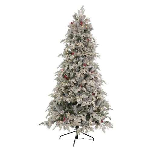 Albero Natale addobbato SOLE Verde innevato (PVC e PE - H210 D127 cm) 500 luci - LED