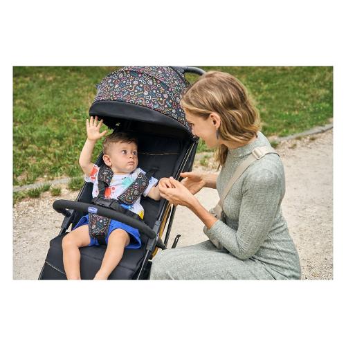 La seduta ampia e imbottita di glee offre al bambino il massimo comfort. Anche spallacci e spartigambe sono imbottiti.