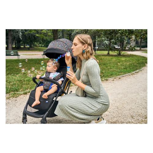 Il passeggino si chiude con un solo movimento ed è leggerissimo: pesa solo 5,9 kg!