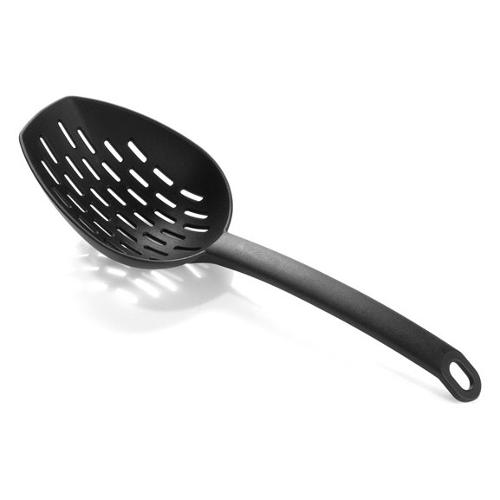 Il cucchiaione scolatutto sarà un alleato prezioso nella tua cucina: bello capiente, ti permette di prelevare gli alimenti dai recipienti di cottura. Potrai scolare la pasta o gli gnocchi con un utensile dall’ingombro minimo e senza usare lo scolapasta, oppure togliere i fritti dall’olio e servirli croccanti ed asciutti nel piatto. L’utensile è prodotto in nylon, resistente fino a 210 °c, quindi immune all’attacco degli acidi, non assorbe né odori nè colori degli alimenti.