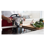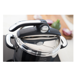 Pentola a pressione mia in acciaio inox 18/10 con tecnologia lagoeasy’up: esclusivo sistema di apertura brevettato ed ancor più facile Da utilizzare. Valvola di scarico a rotazione, semplice da usare e facile da pulire per controllare direttamente la fuoriuscita verticale del vapore. Fondo irradialplus adatto a tutti i piani cottura, incluso l’induzione. 6 sistemi di sicurezza. Manici removibili ed interscambiabili.