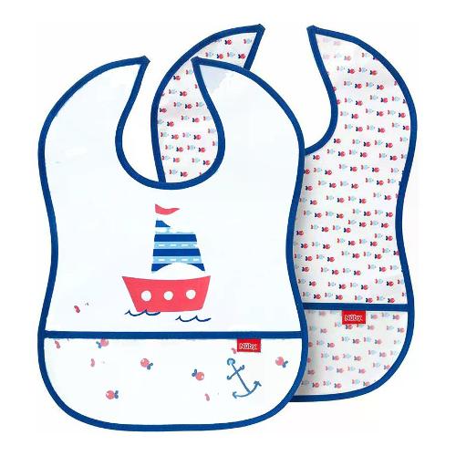 Raccogli tutte le briciole e i pezzetti del pasto con questo set impermeabile e lavabile! Niente più gocce sparse con questo divertente bavaglino di nûby™. Tessuto impermeabile, facile da pulire. La tasca raccoglibriciole raccoglie tutti i piccoli pezzi e previene macchie e schizzi sui vestiti del bambino. Bavaglino perfetto per lo svezzamento e per iniziare l'alimentazione da soli.
