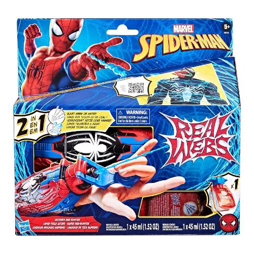 Sei pronto a lanciare ragnatele realistiche, proprio come spider-man? Il blaster di ragnatele eccezionale di spider-man è dotato di un innovativo fluido che si trasforma in una ragnatela simile a un gel con cui poter giocare! Questo blaster è dotato di ragnatele di ultima generazione e presenta 3 modalità di gioco. I bambini e le bambine dai 5 anni in su possono allacciare il blaster al polso, sfoggiare la loro migliore posa da spider-man e premere il pulsante per lanciare ragnatele o acqua! Gioca con le ragnatele per immaginare di catturare il nuovo nemico di spider-man o usale per avvolgere le action figure o i playset (venduti separatamente) per creare il tuo fantastico mondo di spider-man! Il blaster include 1 bottiglietta di ragnatele realistiche (ricariche disponibili, vendute separatamente) e 1 bottiglietta ricaricabile per l'acqua. Il nuovo blaster di ragnatele è un'ottima idea regalo per ragazzi e ragazze ispirata a spider-man e può essere una divertente e avvincente aggiunta ai costumi o alla maschera di spider-man