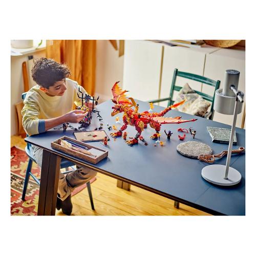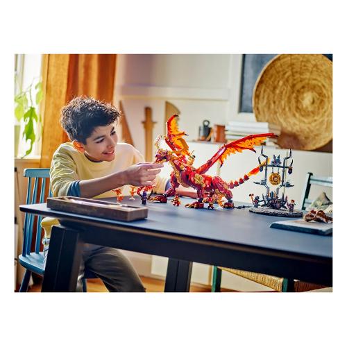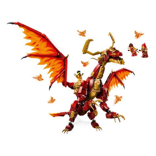 Con questo fantastico giocattolo d’avventura Drago-Sorgente del Movimento (71822), i bambini dai 12 anni in su potranno ricreare le avventure aeree della Stagione 2 del programma televisivo La rivolta dei draghi NINJAGO®. Questo è il drago LEGO® più grande di sempre ed è dotato di gambe, coda, fianchi, mascella, testa, collo e grandi ali snodabili. Il set contiene anche una sella-trono sul dorso e 6 draghi spirituali più piccoli.