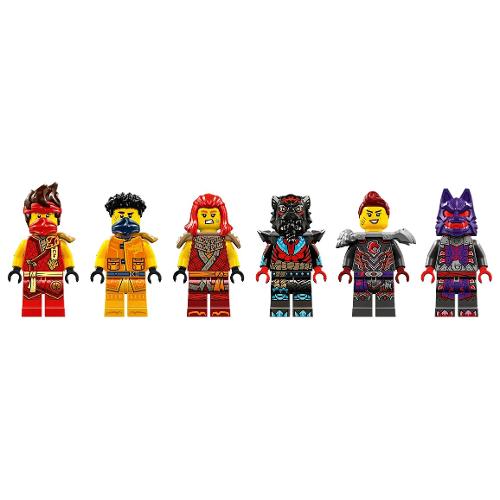 Questo set con drago giocattolo include 6 minifigure con cui i bambini possono inscenare battaglie: i guerrieri ninja Kai, Wyldfyre e Arin (con fantastiche spade e armi accessorie) e il malvagio trio di Lord Ras, Jordana e un Guerriero Maschera del Lupo, ciascuno con la propria arma.
