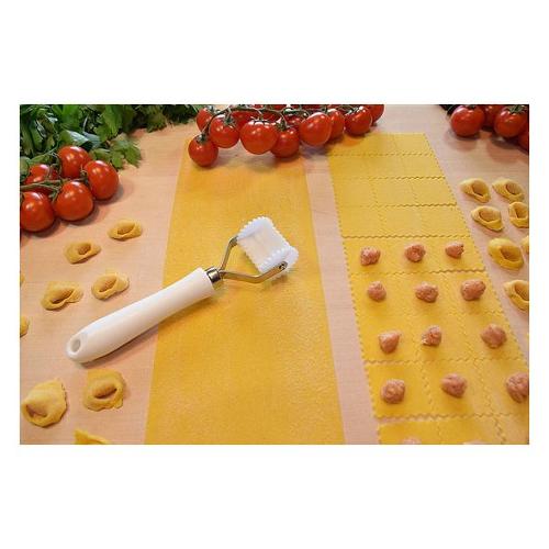 Facendo scorrere sulla sfoglia questo pratico tagliapasta otterrete 3 quadrati di pasta al giro da 38 mm con il minimo spreco di sfoglia. Ideale per la preparazione di tortellini medi.