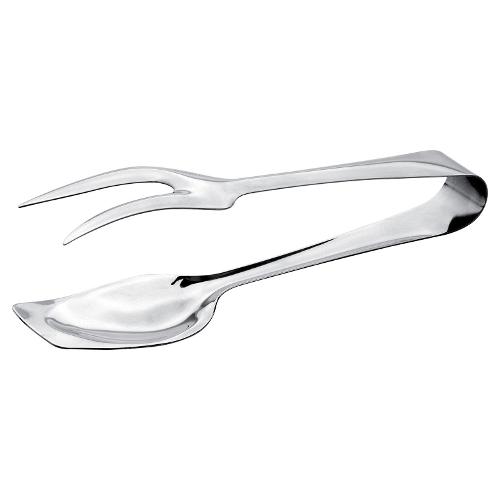Molla per carne e vegetali interamente progettata e realizzata in italia. Design by gianni piazza. Ricorda il metodo professionale del cameriere: la parte piatta e leggermente bombata del cucchiaio permettere una presa facile sotto la fetta e la forchetta la chiude perfettamente.