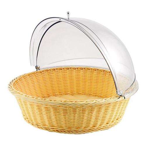 Cesta pane con cupola coordinato destinato al libero servizio della moderna ristorazione. Favorisce una magnifica esposizione che esalta l'immagine della qualità dei cibi proposti.Base Ricoperta da una speciale pellicola protettiva atossica, idonea al contatto con gli alimenti