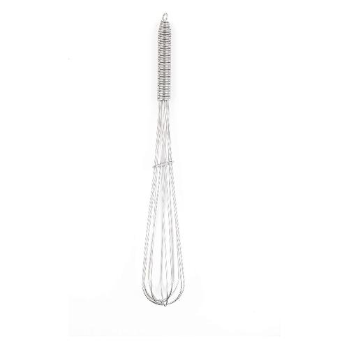 Frusta da cucina in acciaio inossidabile con manico a spirale. Utensile da cucina formato da fili in acciaio inossidabile con la classica forma a palloncino per sbattere uova, montare latte o miscelare creme o salse. Facile da usare, progettato per un eccellente equilibrio e controllo, la differenza si può veramente sentire nella mano. Le Estremità in acciaio inossidabile permettono di appenderlo facilmente su ogni gancio della cucina, permettendo di riporlo facilmente.