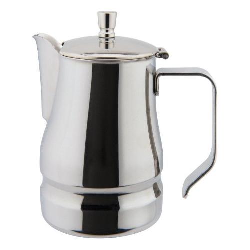 Caffettiera della serie évolution in acciaio inox 18/10 dotata di particolare beccuccio rompi-goccia. Il design di questo prodotto è brevettato per la sua particolarissima forma con scanalatura, la cerniera saldata all’interno del bricco permette di mantenere inalterata l’eleganza della linea. La linea évolution, caratterizzata da un design esclusivo che favorisce la preparazione dei cappuccini a regola d'arte, è stata prodotta per diventare il punto di riferimento nel mondo della latte art.