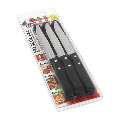 Set coltelli bistecca Inox 6 pz lama dentata 11,5 cm RIVETTATA Nero 28RBV6N